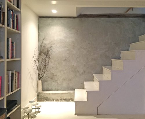 A grand Cambridgeport late 19th century Mansard Victorian had been wrapped in aluminum siding and divided into six apartments with small rooms and dropped ceilings. We recreated the historic exterior, and redesigned the interior common areas, saving and restoring original woodwork wherever possible. On the top floor, we created a penthouse unit with cathedral ceilings, skylights, and access to the roof with Boston skyline views. The remaining five units were reconfigured as pied-a-terre’s with open floor plans. The 650 sq ft units feel expansive due to the use of oversized windows, low built-in bookcases, streamlined kitchen layouts, and scaled down furnishings.