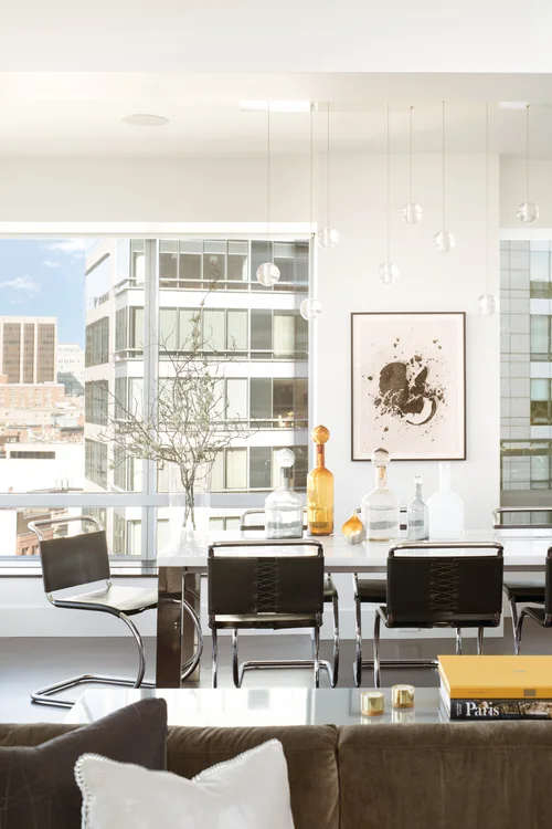 Two expanded open floor plan apartments were created by accessing both the attic and basement areas for additional living space and opening up the apartments to create spacious living areas that took advantage of the Boston skyline views. By mixing various high end finishes with extremely prudent design solutions, we were able to deliver two substantially sized, sustainable, contemporary apartments that defied the actual budget.